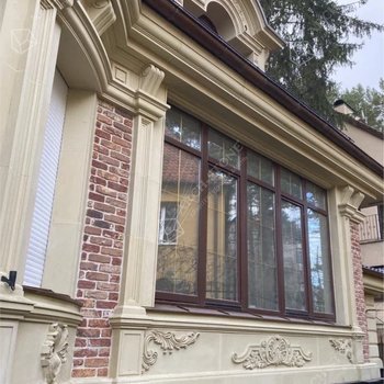 Весь декор выполнен на заводе ГК "Идеальный Фасад" по эскизам архитектора проекта, и только 10% - это стандартные изделия по каталогу.